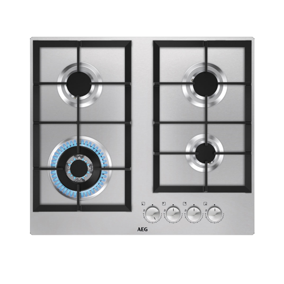 UltraFlat, 4 queim., tripla coroa, comandos frontais, 2 grelhas em ferro fundido, mesa Inox, 60cm