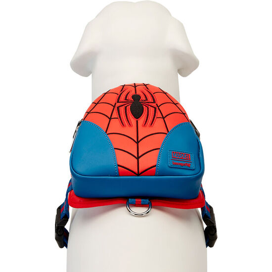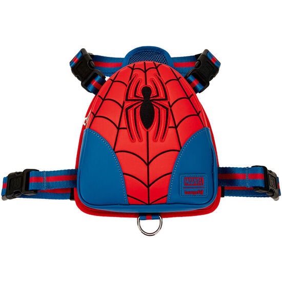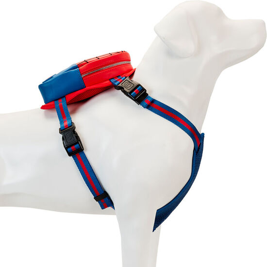 Arnes mochila perros Spiderman Marvel Loungefly. Talla L. Tamaño cuello: 32,5×62,5cm. Tamaño pecho: 57,5×112,5cm. El arnés Loungefly Disney I Heart Disney Dogs All-Over-Print tiene cuero vegano, detalles de malla y estampados, y herrajes de metal dorado brillante. Fíjate en el forro interior a juego.