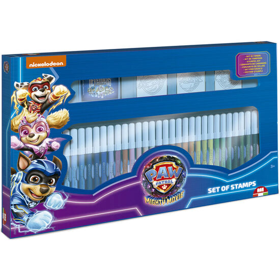 Blister papeleria Patrulla Canina Paw Patrol Movie 41pzs. Contiene: 3 sellos, 1 libro de actividades, 1 tinta lavable, 36 rotuladores lavables. Tamaño: 43x28x3cm.