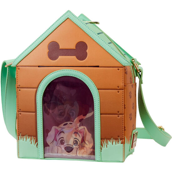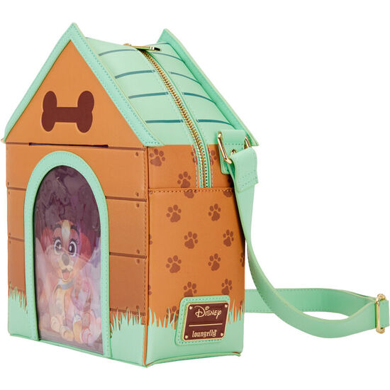Bolso lenticular I Heart Dogs Dog House Disney Loungefly. El bolso crossbody incluye piel vegana (poliuretano), herrajes dorados brillantes, tirantes ajustables y extraíbles, un bolsillo de PVC para una foto y detalles con apliques, relieves, debossed, lenticulares y estampados. Destaca el forro a juego.