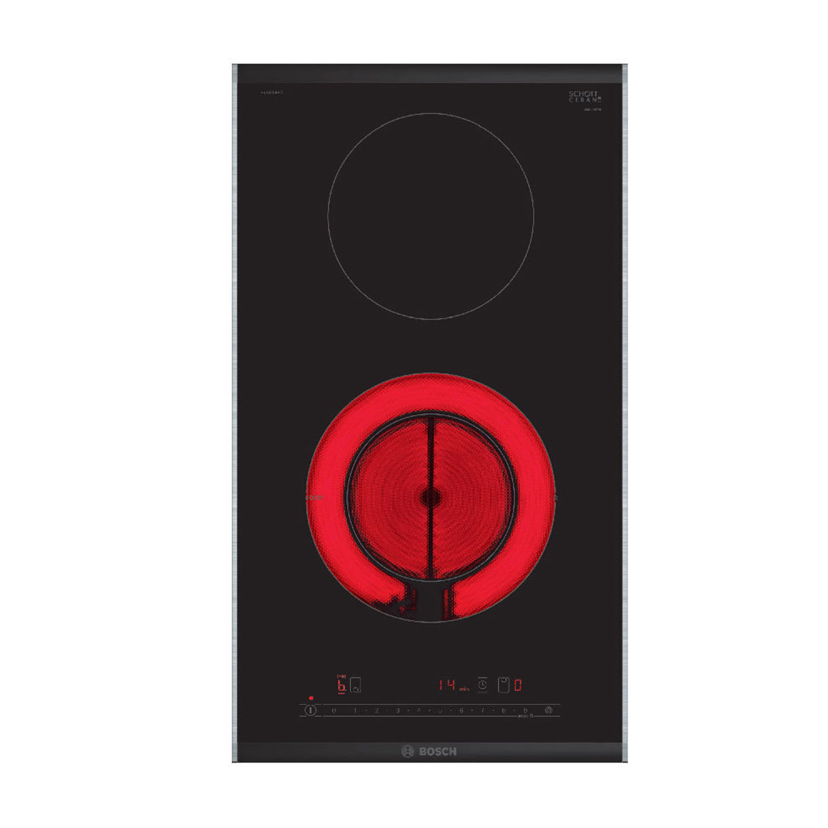 SER6, Dominó Vitrocerâmica, 30 cm, Comfort Design, 2 zonas (1 dupla com Boost), DirectSelect (17 níveis de potência),
