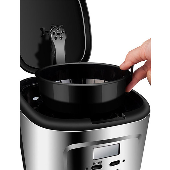 Pantalla con iluminación LCD que te permitirá controlar y monitorear fácilmente la preparación de tu café. Podrás programar la hora en la que quieres que empiece a funcionar para tener listo tu café a la hora que quieras. Gracias a su sistema anti goteo mientras la jarra no esté en la placa de la cafetera, esta lo detecta y deja de funcionar. Así, mantendrás siempre tu cocina limpia y además sin derrochar café.