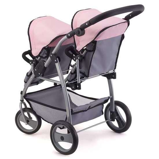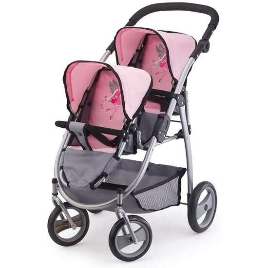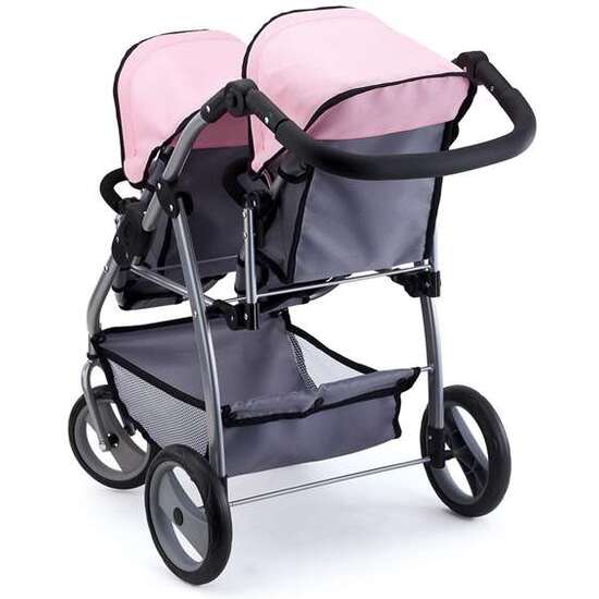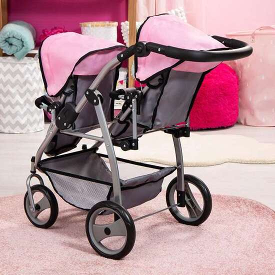 COCHE DE MUÑECA GEMELAR GRIS/ROSA 76X63X4 6CM