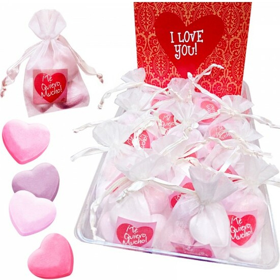 Incluye 12 bolsitas con sales de baño aromáticas con forma de corazón.