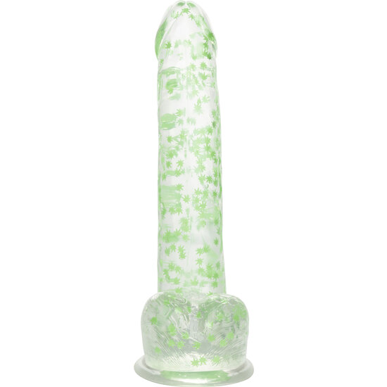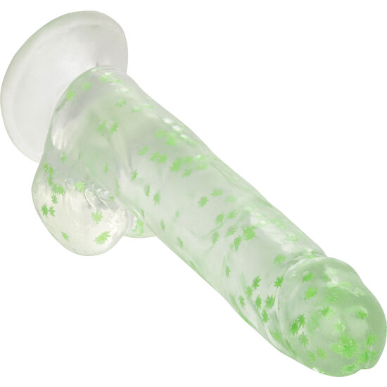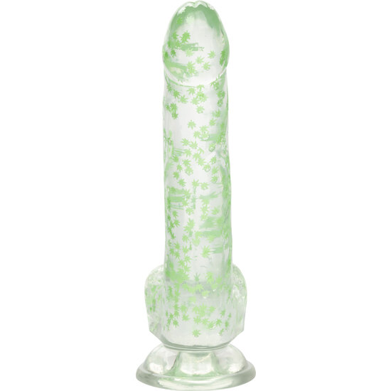 ¡El Naughty Bits I Leaf Dick Glow in the Dark Weed Leaf Dong es un espectáculo total de humo! El divertido dong está fabricado con una sensación realista, base con ventosa y diseño de confeti de hoja de marihuana que brilla en la oscuridad. Entregue el placer que ha estado buscando con un eje texturizado de 8 pulgadas de largo, cabeza realista y bolas realistas. El diseño extremadamente flexible lo hace un paseo extra cómodo.