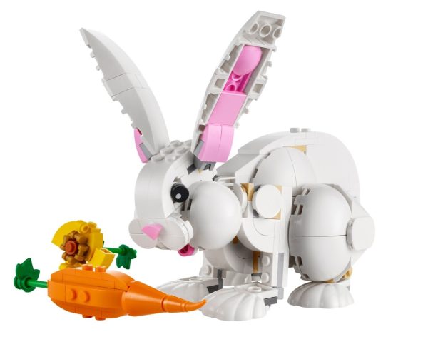 Los niños a partir de 8 años podrán interpretar divertidas historias con el fantástico set LEGO® Creator 3en1 Conejo Blanco (31133), un conejito de juguete para construir con cabeza, patas, boca y orejas articuladas que viene con 2 opciones de tentempiés: una zanahoria o una flor.