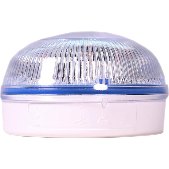 La baliza emite un intenso destello en color amarillo auto con LED de alta intensidad (65 candelas efectivas) que cubre 360º y, gracias a su base magnética, se sostiene a la superficie del coche u otras superficies férricas.