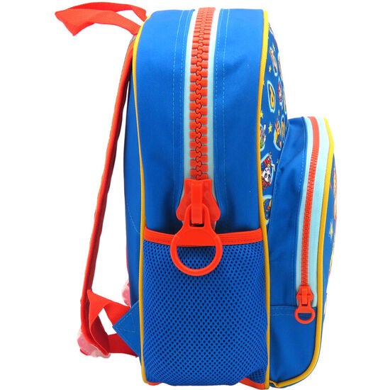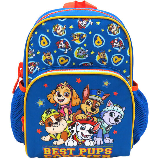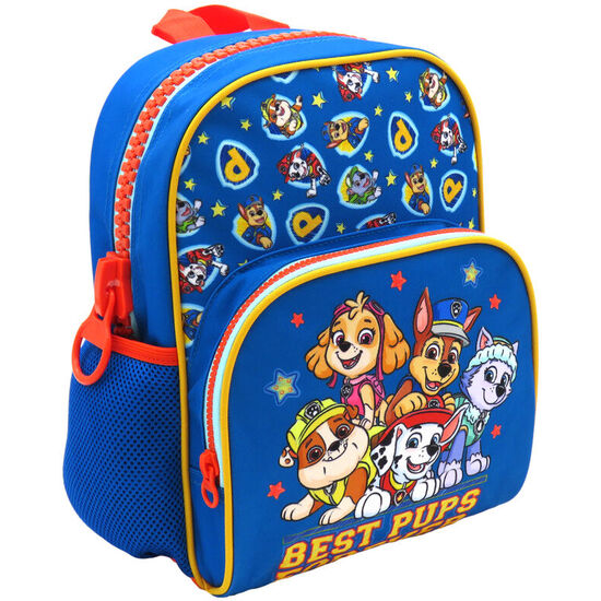 Mochila Patrulla Canina Paw Patrol 30cm. Tamaño: 22x15x30cm. Cuentan con correas ajustables, dos prácticos bolsillos de rejilla lateral reforzada que resiste a rozaduras y golpes y cremalleras muy resistentes hechas en material de plástico más ancho y de mayor calidad que las cremalleras estándar. Además, tienen un práctico bolsillo frontal para guardar el estuche o la agenda escolar. Con asa superior para colgarla con facilidad en la percha de casa o del cole.