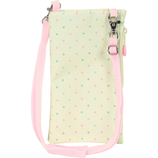 Compartimento con cremallera para monedas. Alojamiento para el teléfono movil de hasta 6,9”. Cordón ajustable para colgar.