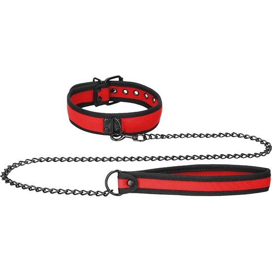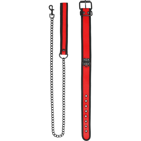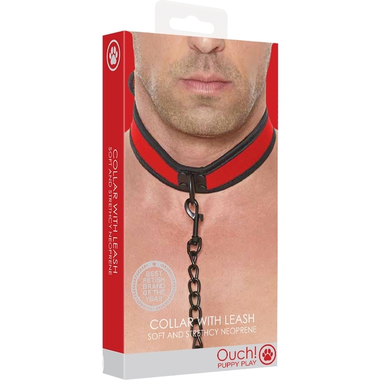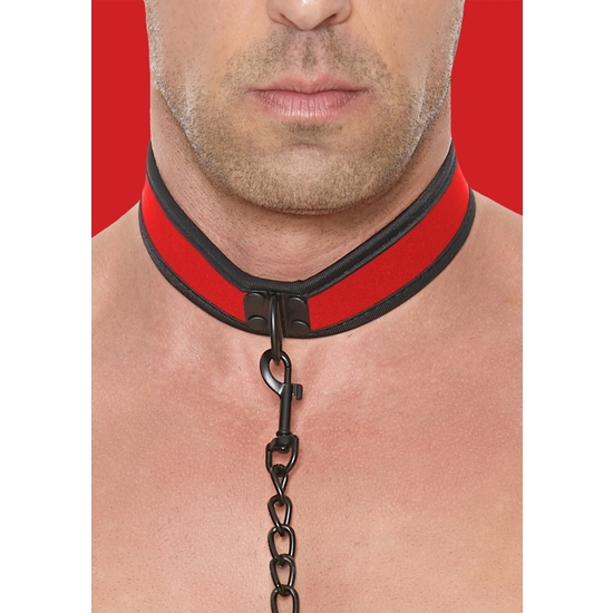 OUCH PUPPY PLAY – COLLAR DE NEOPRENO CON CADENA – ROJO