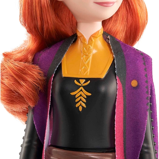 Deja que la magia de Frozen 2 de Disney cobre vida con la impresionante muñeca Anna, inspirada en la encantadora princesa animada. Esta muñeca de moda articulada captura a la perfección la esencia de Anna y está diseñada para brindar horas de diversión y creatividad a los pequeños fanáticos de las muñecas y las Princesas Disney. La muñeca Anna viene vestida con su conjunto de viaje negro y morado, que incluye una capa y una falda delicadas, así como botas, todas intercambiables. Cada detalle ha sido cuidadosamente elaborado para garantizar una apariencia fiel al personaje animado de Disney. Los niños y niñas podrán recrear los momentos más emocionantes de Frozen 2 con esta muñeca o dejar volar su imaginación y crear sus propias aventuras llenas de magia y emoción. El cabello de Anna es cepillable y está semi recogido en una trenza, al igual que se muestra en la película. Los pequeños podrán peinar y cuidar el cabello de Anna, añadiendo un toque de realismo y creatividad a la experiencia de juego. Esta muñeca no solo es un regalo perfecto para recrear los momentos favoritos de Frozen 2 de Disney, sino que también estimula la imaginación y el juego creativo de los niños y niñas. Invita a los pequeños a sumergirse en el mágico mundo de Arendelle y a imaginar nuevas y emocionantes aventuras junto a Anna.