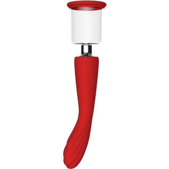 Este estimulador doble tiene una función de succión en un lado con 2 ventosas intercambiables para adaptarse a los labios, el clítoris, los pezones y otras zonas erógenas. El otro lado se puede usar como masajeador o vibrador para el punto G con relieves estimulantes y tiene 7 ritmos de vibración. El estimulador tiene 2 motores y es recargable con el cable USB magnético incluido. IPX7 a prueba de agua. Hecho de silicona, ABS y plástico policarbonato.Vibrador de succión con liberación de aireVibrador de punto G y bomba de succión2 ventosas intercambiables incluidasRecargable por USB, cable USB magnético incluido7 modos de vibraciónHecho de silicona y ABS y PCDimensiones: 29,3 x 6,8 x 6,8 cmFuncionamiento:La luz indicadora parpadea mientras se carga. Cuando el vibrador esté completamente cargado, la luz estará encendida de forma continua. Presione el botón de encendido durante 2 segundos para encender o apagar la energía. Presione el botón de encendido brevemente para iniciar la succión con liberación de aire. Presione el botón superior durante 1 segundo para pausar la succión con liberación de aire. Mantenga presionado este botón para seguir succionando y presione brevemente para liberar aire. Presione el botón inferior brevemente para iniciar la vibración. Presione el botón superior brevemente para pausar la vibración.