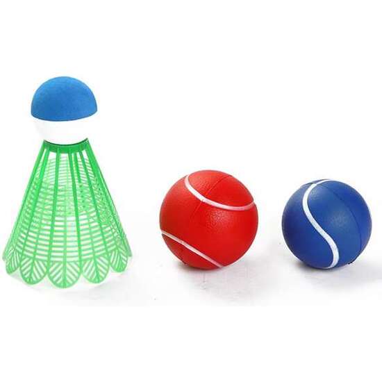 Set 3 IN 1 con Pelota ,palas y pelotas outdoor 180x134cm. Edad minima recomendada 3A. Sí Montaje necesario. Idiomas caja ES|EN|FR. Idiomas instrucciones ES|EN|FR. Idioma producto ES|EN|FR