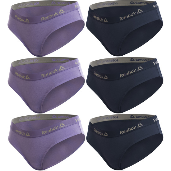Set de 6 shorts deportivos/culottes deportivos tipo slip para mujer REEBOK.Cinturas elásticas con logo impreso.Se compone de estos modelos:3x Color lila3x Color azul marinoCon costuras planas para un perfecto confort.