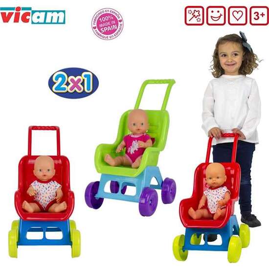 Silla mas Muñeca vinilo 35 Cm 2X1 – Modelos surtidos. Edad minima recomendada 3a. Edad maxima recomendada 7a. Edad minima advertida 3a. No Montaje necesario. No Utiliza pilas. No Emite sonidos. No Tiene luces. Idiomas caja ES. Idioma producto ES. Material PLÁSTICO + PVC