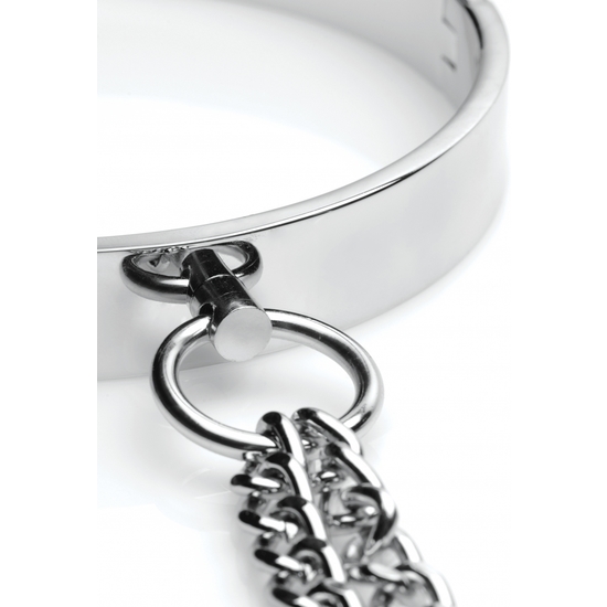 Bloquee a su esclavo y haga que se sometan con este elegante collar de cromo de alta calidad.