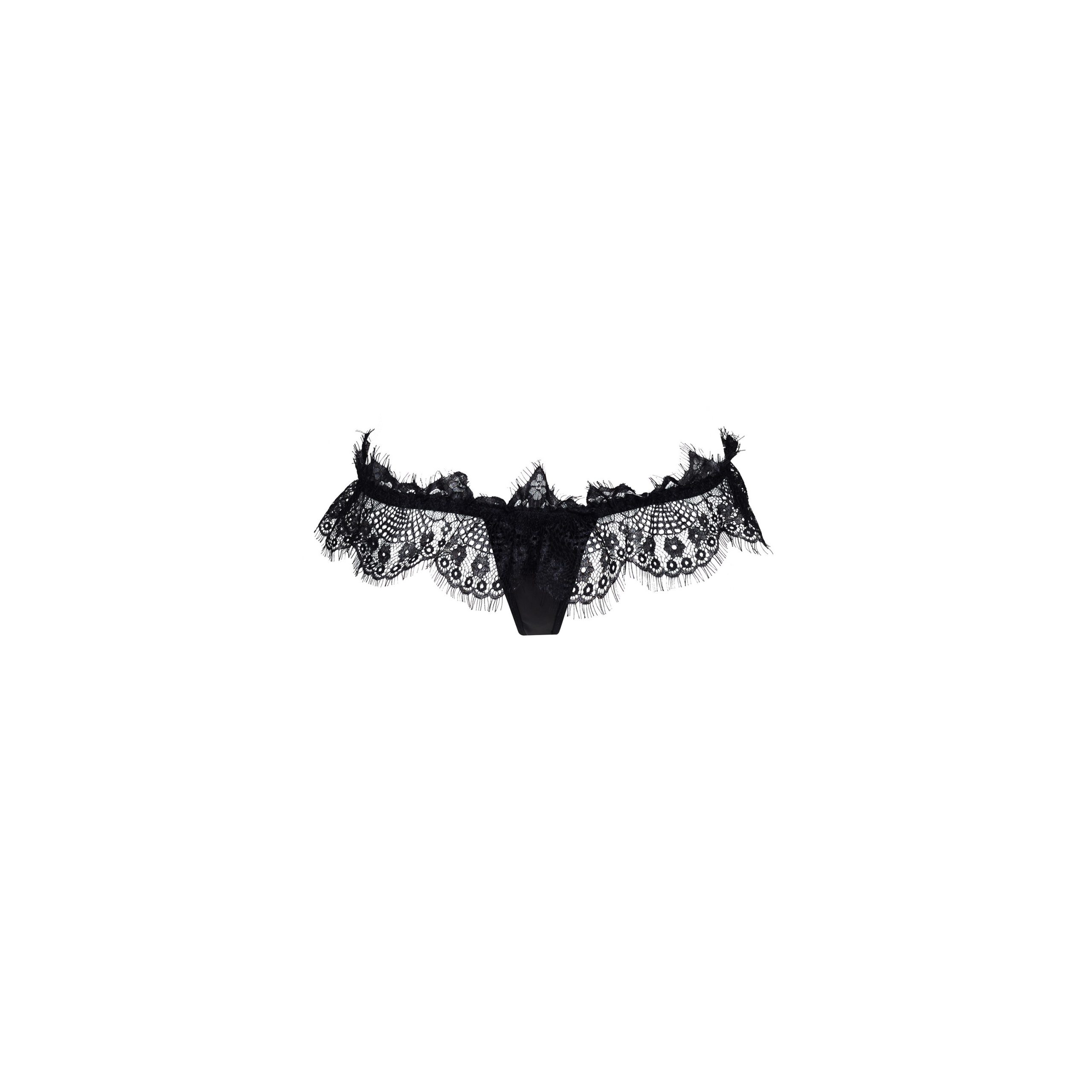 Descubra o fascínio sensual da Brandi Thong Black, um complemento perfeito para a sua coleção de lingerie que combina elegância com um toque de fascínio. Esta requintada tanga, feita de renda delicada, acentua maravilhosamente as curvas femininas, garantindo um conforto excecional. Os pequenos laços e os pormenores intrincados conferem um encanto único à tanga.