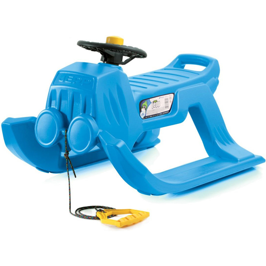 Para disfrutar de la nieve.Trineo alto Jepp, con deslizadores de acero y cuerda, con volante y bocinaColor azulTamaño: 80×44,5×52 cm